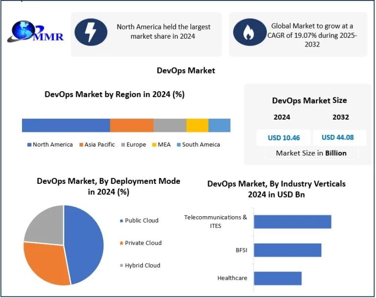 Anticipated Growth in Revenue: The DevOps Market was valued at USD 10.46 Bn in 2024, and total global DevOps Market revenue is expected to grow at a CAGR of 19.07% and reach nearly USD 44.08 Bn from 2025-2032. Growth driven by cloud adoption, agile demand and automation.