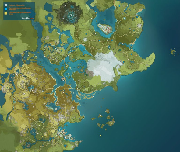 Vingt Sanctuaires des Profondeurs de Genshin Impact ont été repérés et indiqués sur la carte.