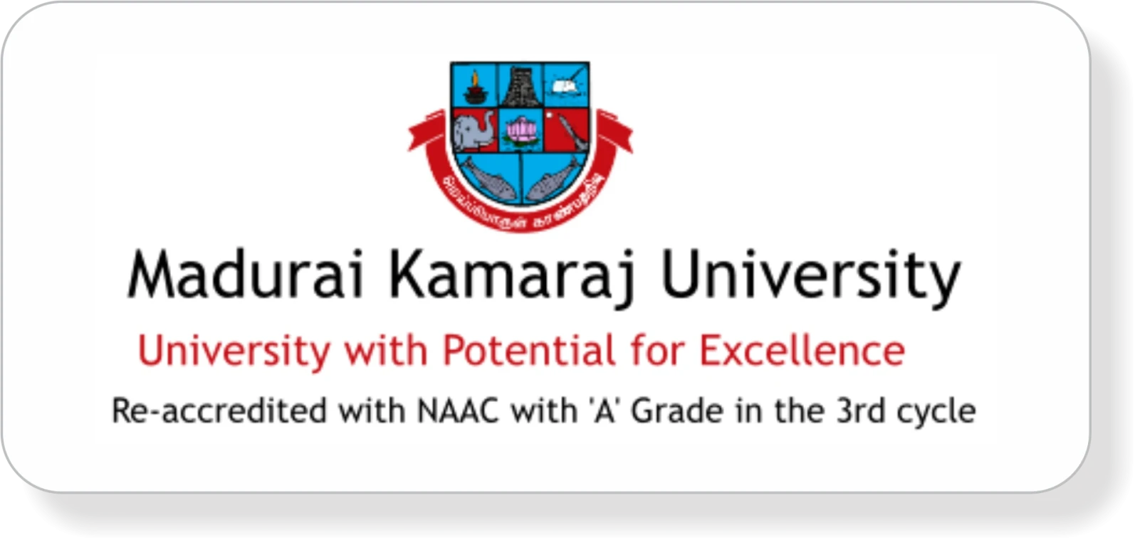 Madurai Kamaraj University has been accredited by NAAC with an A++ grade that demonstrates its excellence in teaching, research, infrastructure and student support services, the NAAC accreditation is a great quality assurance system in the Indian higher education system & A + grade places MKU in the list of top higher education institutions in the country. Through this accreditation, students are guaranteed that the education they get is of high academic standard and is nationally recognized. To the distance learners, NAAC accreditation will improve the value and acceptability of their degrees.