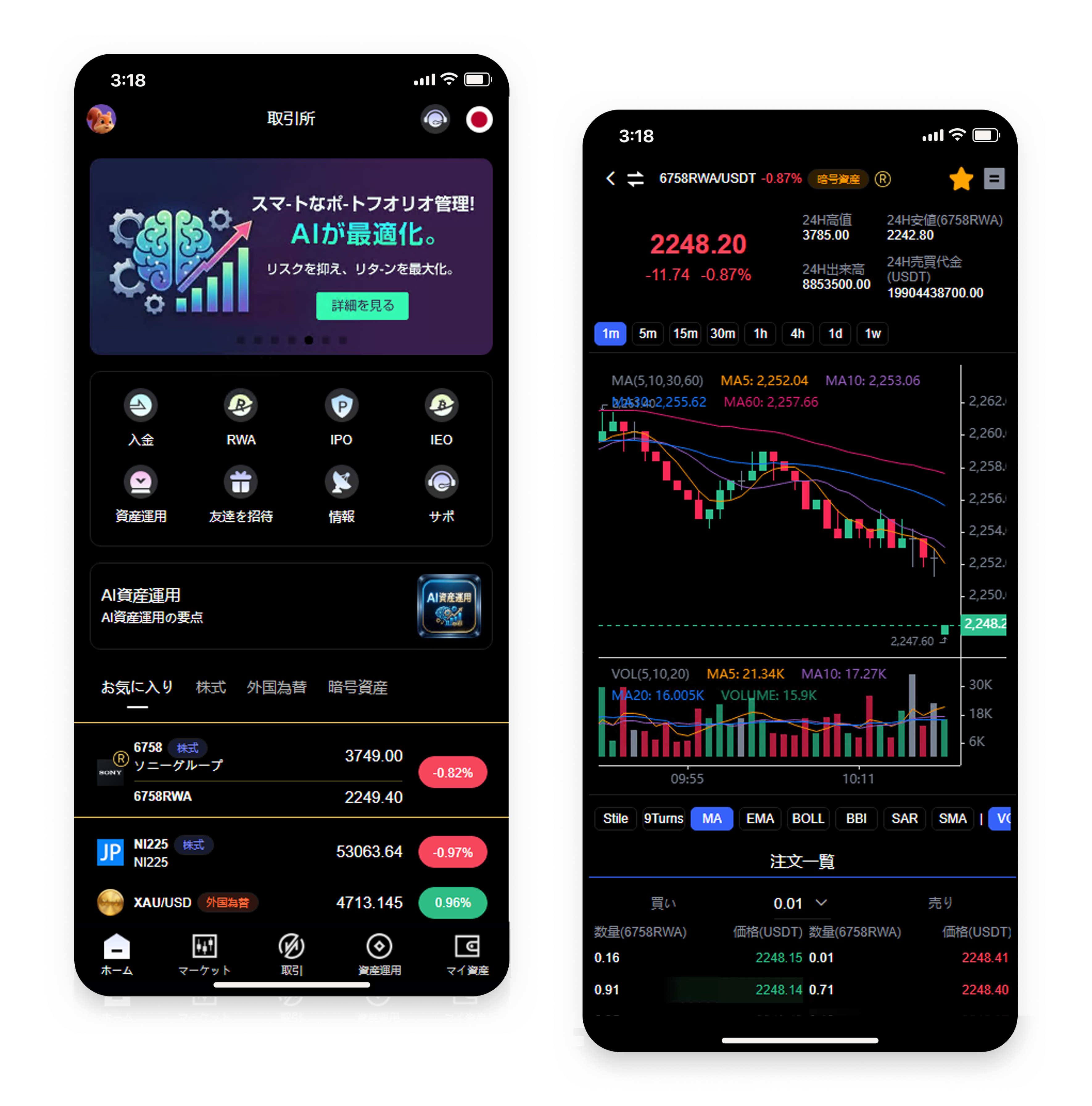 リアルタイム市場分析: AIが市場データを常時監視し、最適な取引タイミングを通知。